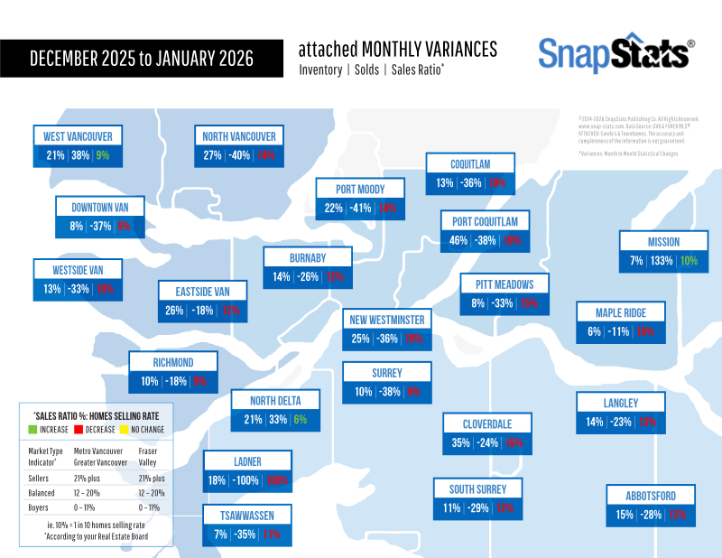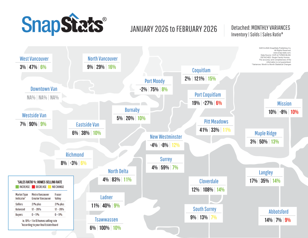 Month to Month Variance Graphic for Detached & Attached Homes
